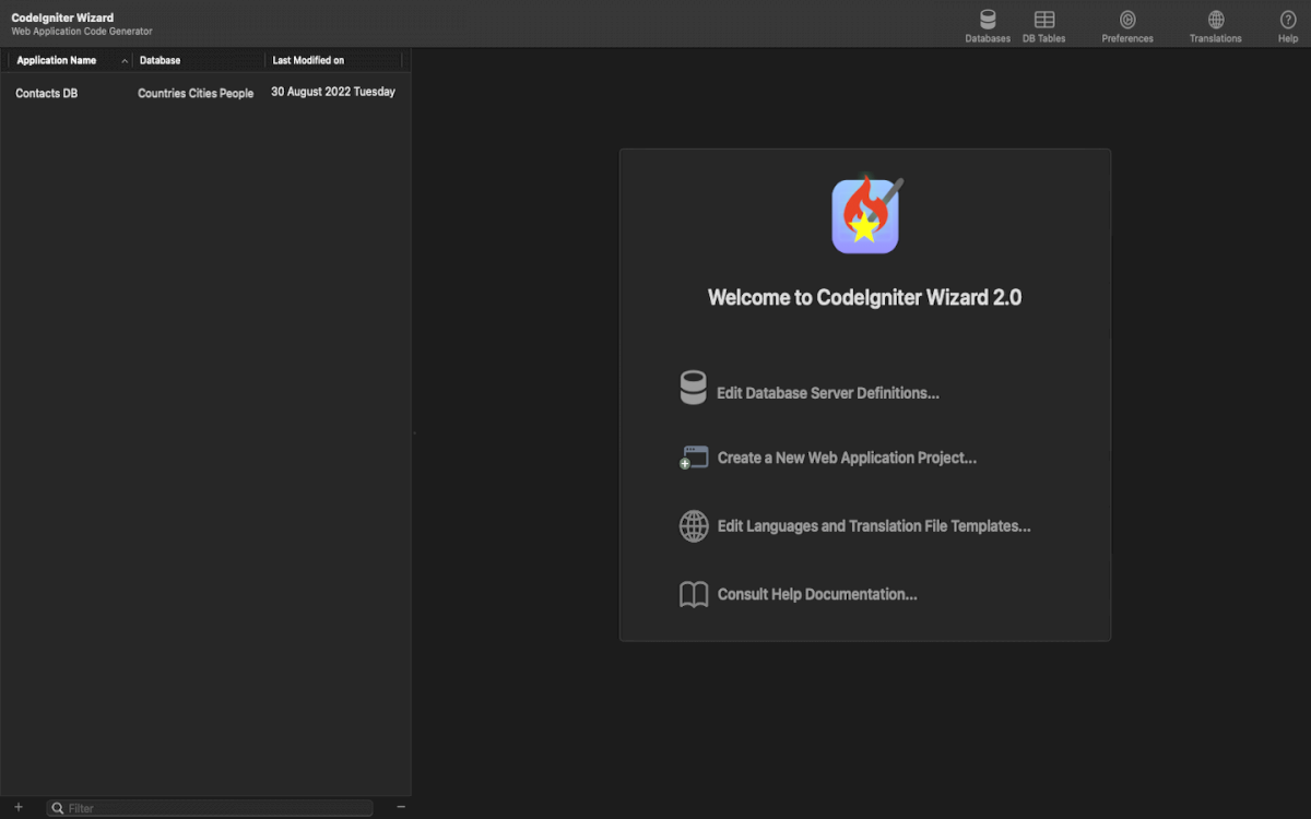 published on 3 Sep 2022 in PHPDevelopment on macOSWeb DevelopmentMac AppsCodeIgniterCodeIgniter Wizard 2.0.7 has been released to fix a couple of reported bugs reported by active users of version 2.0.x soon after it was unveiled on 30 August 2022. With a large number new features added to the application, the time needed to showcase them increased more than ten-fold. Authentication & authorization, secure file uploads for the end user, automatic image resizing post-uploads, language localization and translation in the GUI with the ability to add unlimited number of languages and locale variations, are just to name a few of the new features.